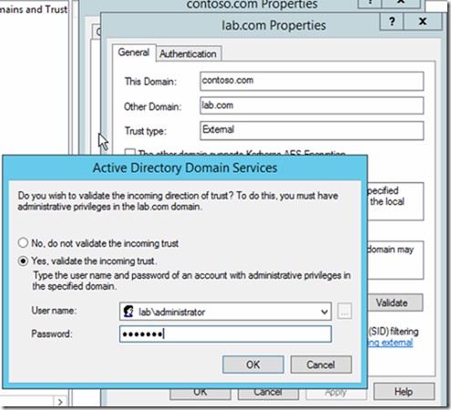 Domain trust sid filtering. Sid filtering is set on all trusts to prevent malicious users who have domain or enterprise administrator level access in a trusted forest from granting to themselves or other user accounts in their forest elevated user rights to a trusting forest. This is described more in ms kile 3 3 5 7 5 cross domain trust and referrals pim trust 0x00000400 if this bit and the tate treat as external bit are set then a cross forest trust to a domain is to be treated as privileged identity management trust for the purposes of sid filtering. If users in the trusted domain were migrated from another third domain sid information from the third domain will not be allowed through the trust link. Filtered sid filtering is active for that trust.