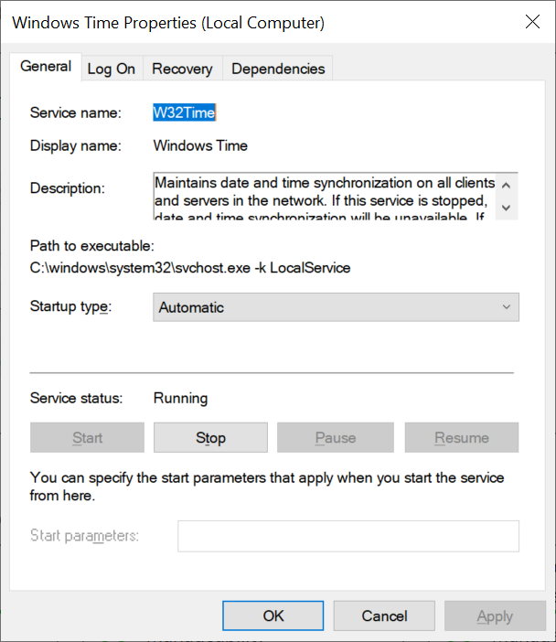 Next to server enter the domain name or ip address of the required ntp server. Nt5ds which indicates it s syncing from the domain hierarchy. This will show you the status of windows time service. Use the w32tm query configuration command to review the current configuration.