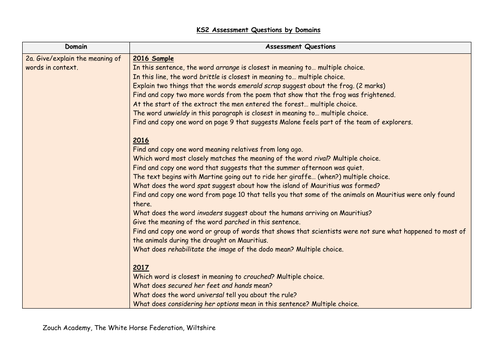 Content domains for ks1 and ks2. Key stage one reading starters. What other word could the author have used instead of. This is a document with example questions for each of the five content domains from the ks1 sats.